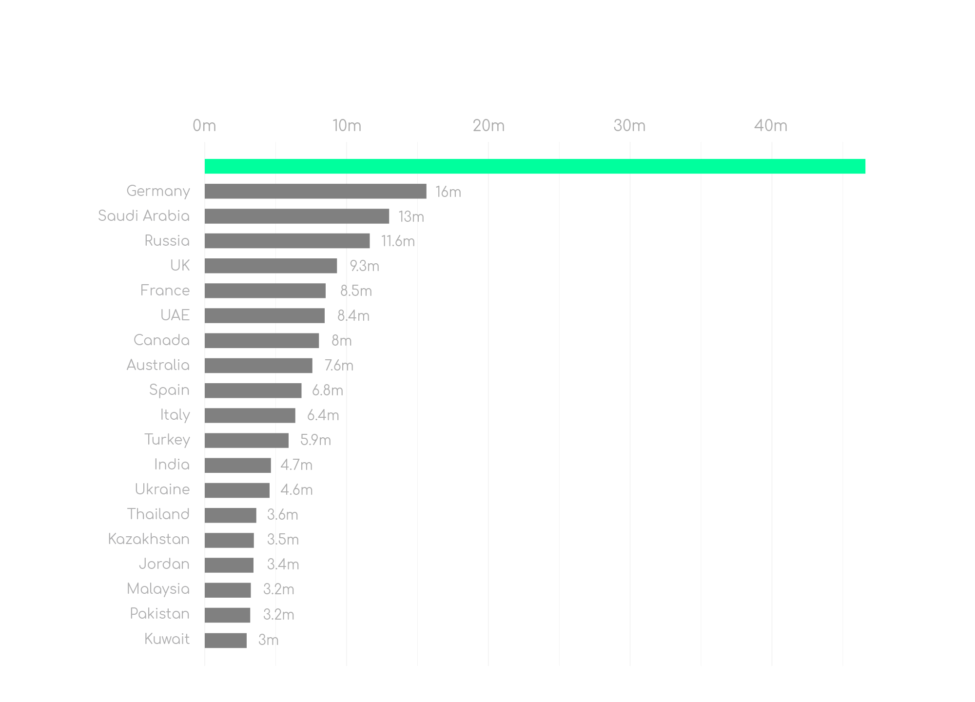 Our comparison has revealed a big gap between migrants who mainly come from two countries (Estonia and Sweden) and search interest to move to Finland which is 99 times higher, coming from 25 countries, topped by France, Russia and India.