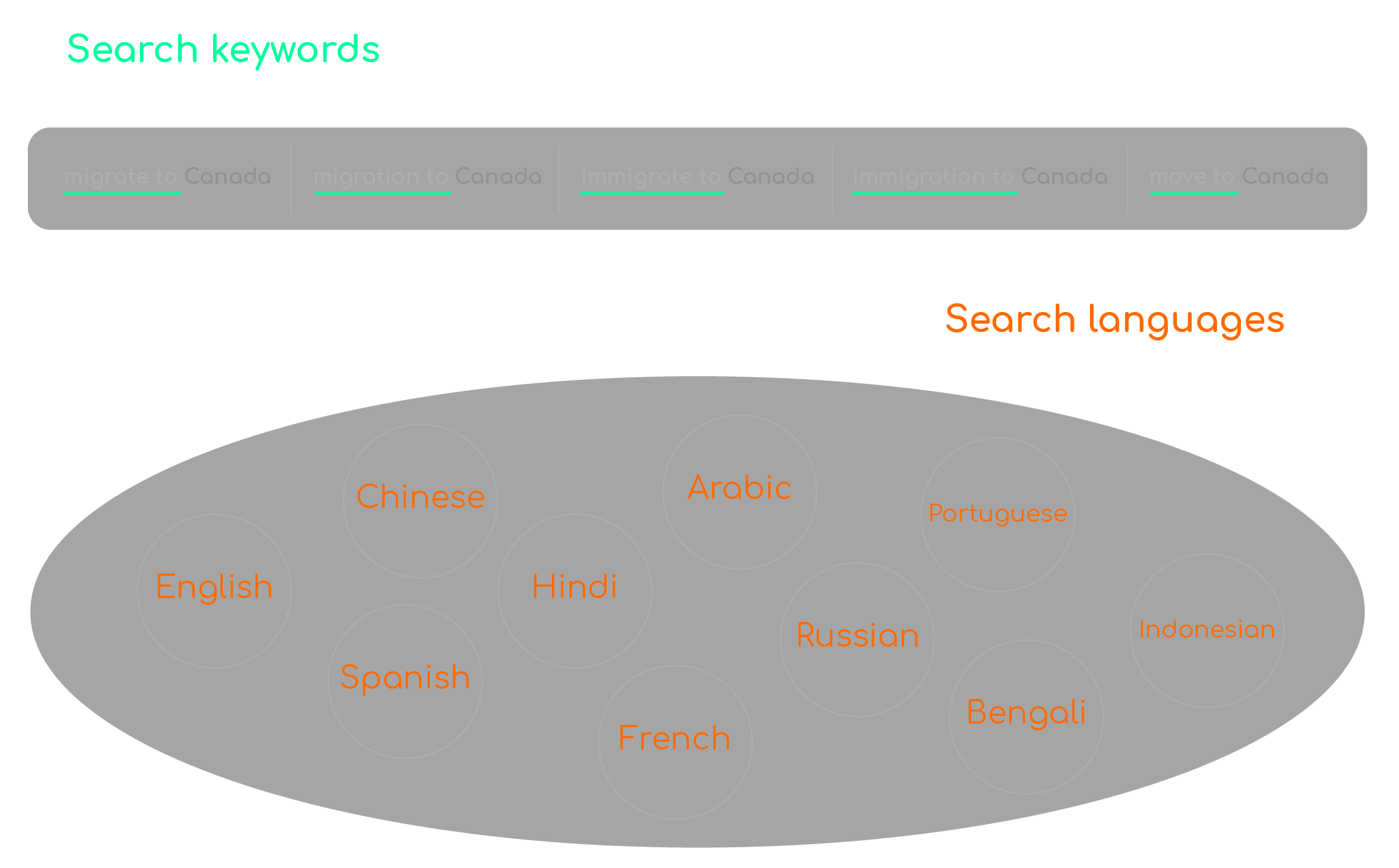 I started to collect the data of these two parallel worlds (migration reality vs. search interest). I had to scrape Google search interest data of world countries for the common time period between the two data sources which is between 2005 and 2020. I used five different forms for common migration queries such as: migrate to (country) or move to (country), etc. Then, to ease the task a little, I only collected the data of the top 100 countries in terms of the number of immigrants to them as per 2020. In order to get more accurate results, I used 10 different translations of the queries according to the ten most spoken languages in the world to have a better coverage on different regions.