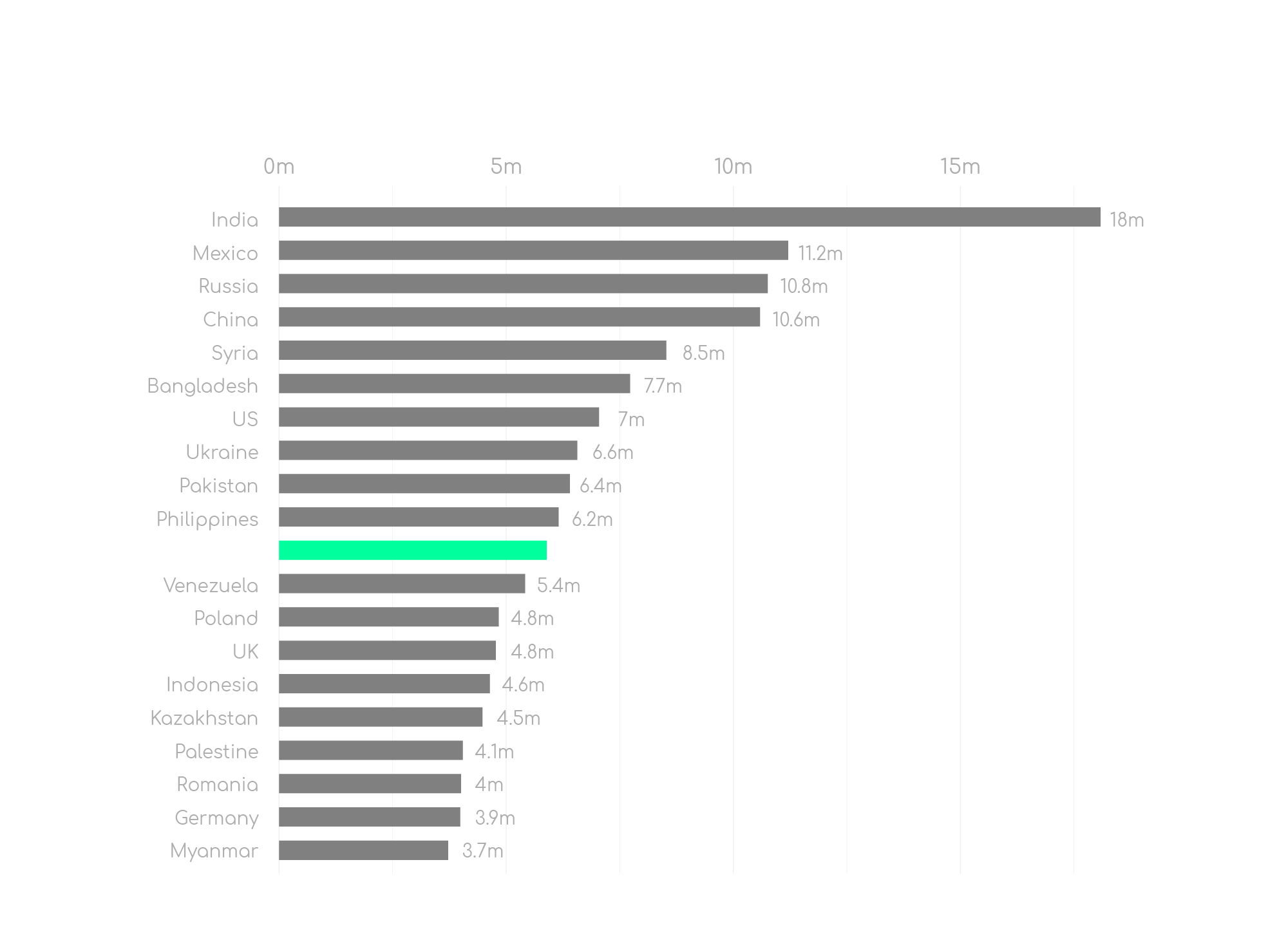 country in the world in terms of the number of migrants, approaching 6 million people, according to