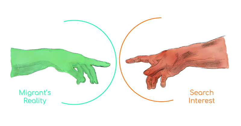A visual exploration of the gap between the reality of the world's migrants and search interest.